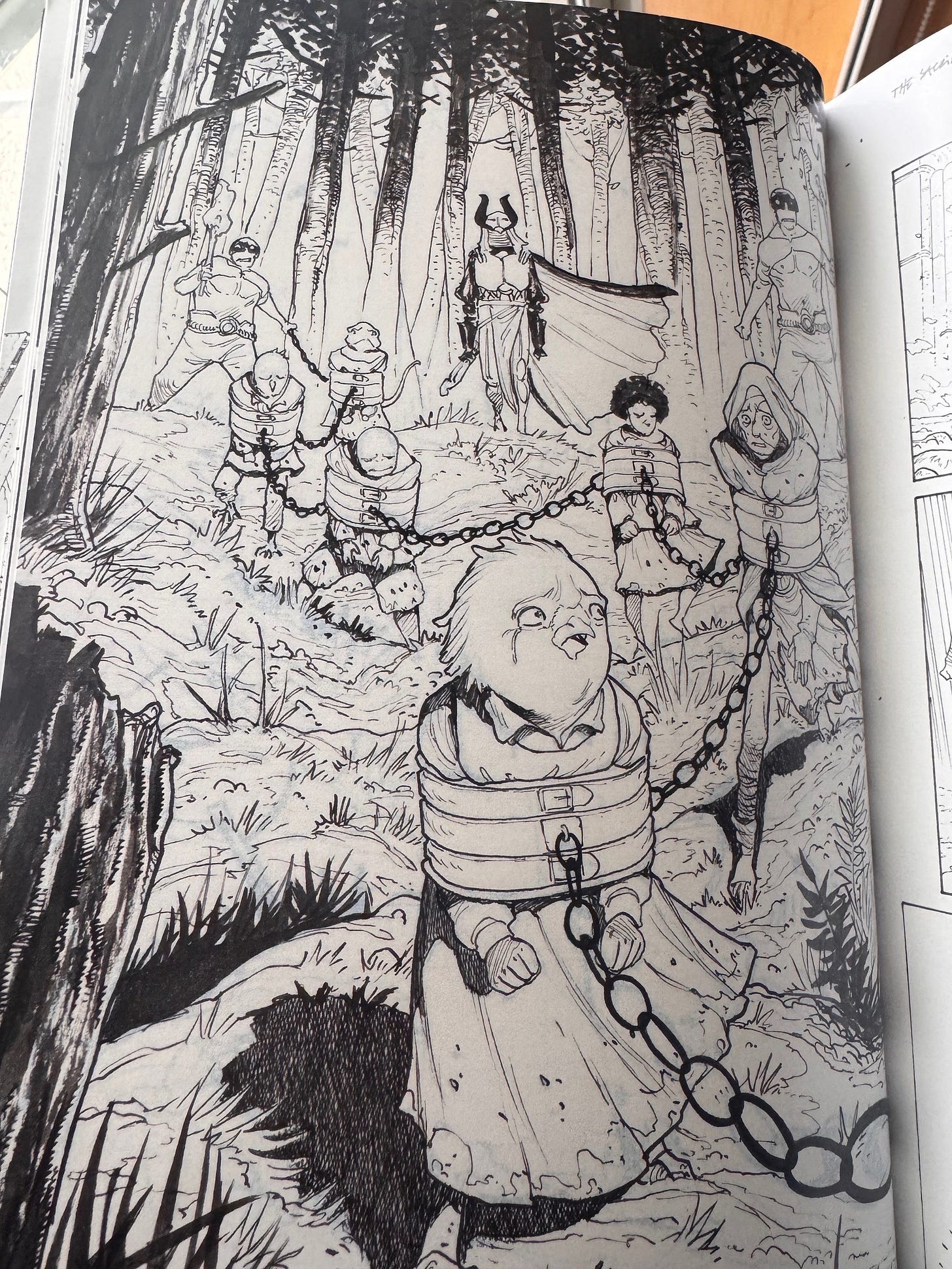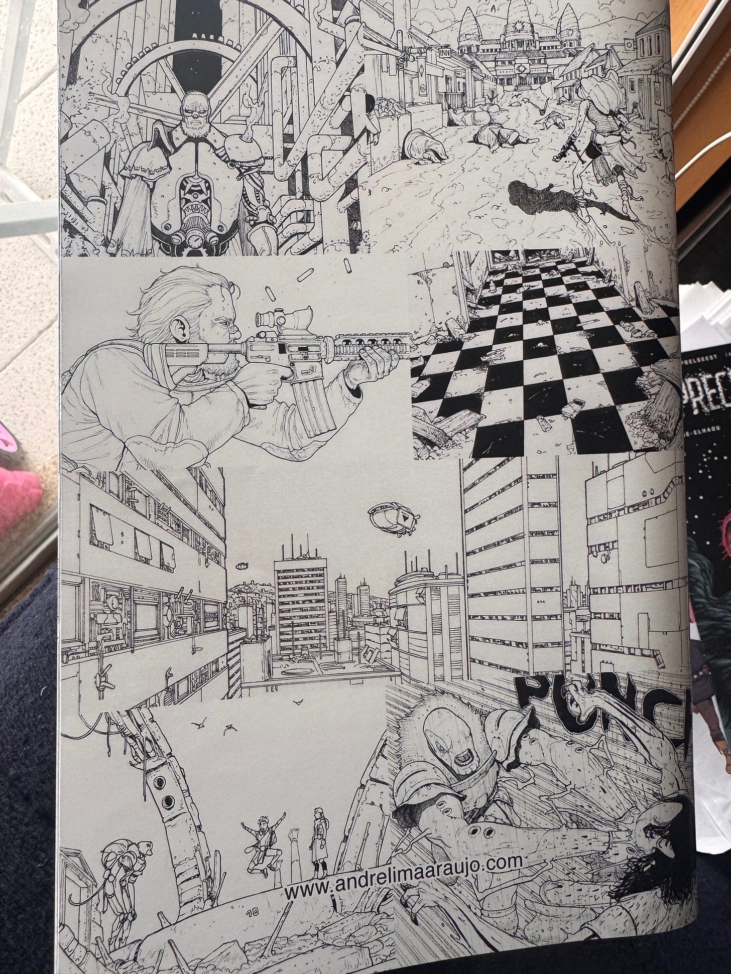I managed to put together a small and simple art book to sell at the convention and other events. It will feature raw scans from my creator owned books and a sample of my cover work, with only small adjustments so you can see the brush strokes, nib lines, white pen and even blue pencils. It’s 50 pages long, with scans from Man Plus, Phenomena, Righteous Thirst and Sacrificers, plus a few covers.