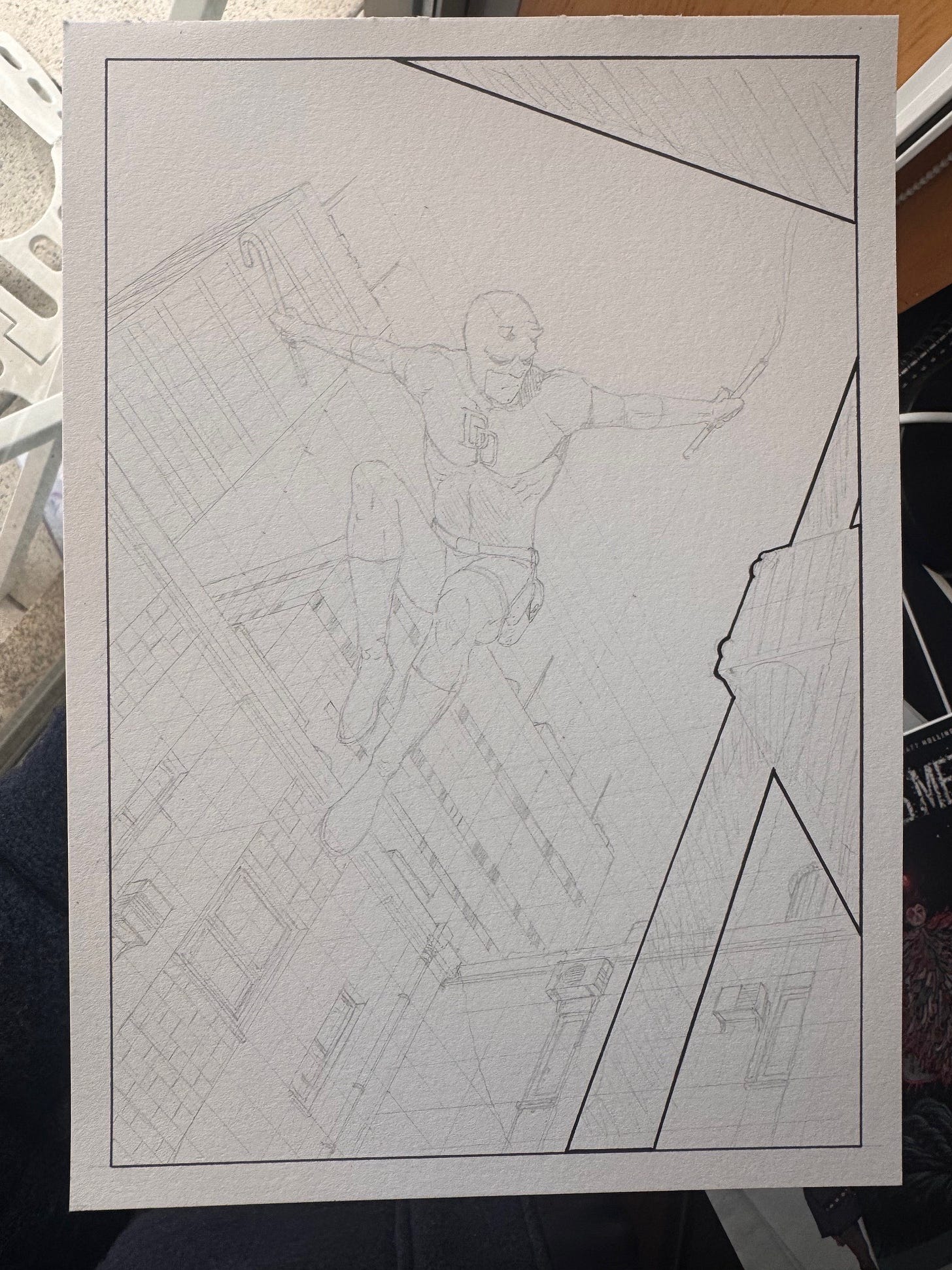 I’ve also been working on some commission work for the Utrecht show. This morning I managed to wrap pencils on a Daredevil piece. I even managed to get the first bit of inking in, just to be able to say I’ve started it. It’s a trick for the brain: getting a stage started means it’s ongoing, no matter how little you did. When I get back to it, it’s much easier to pick it up and hit the ground running.