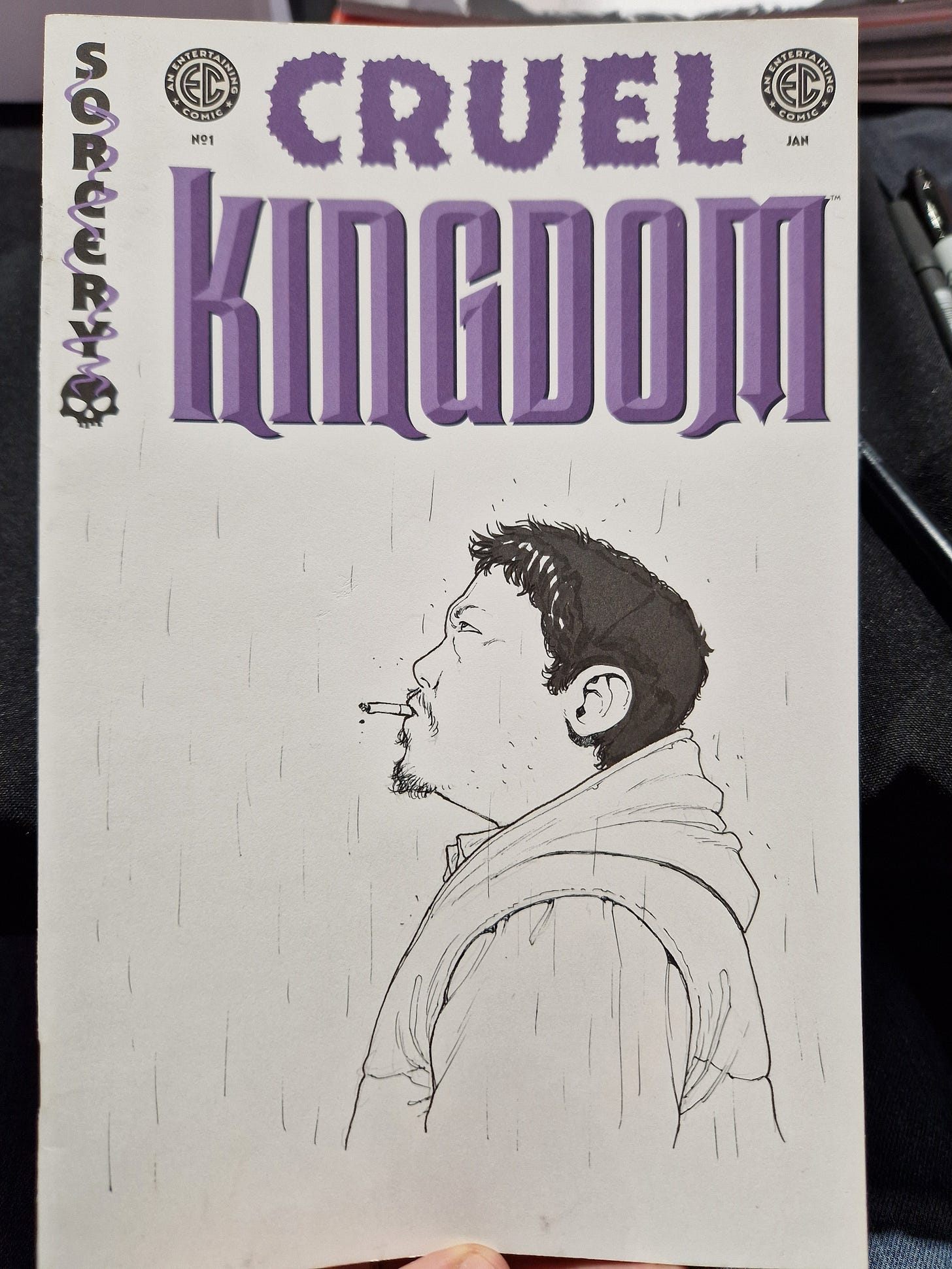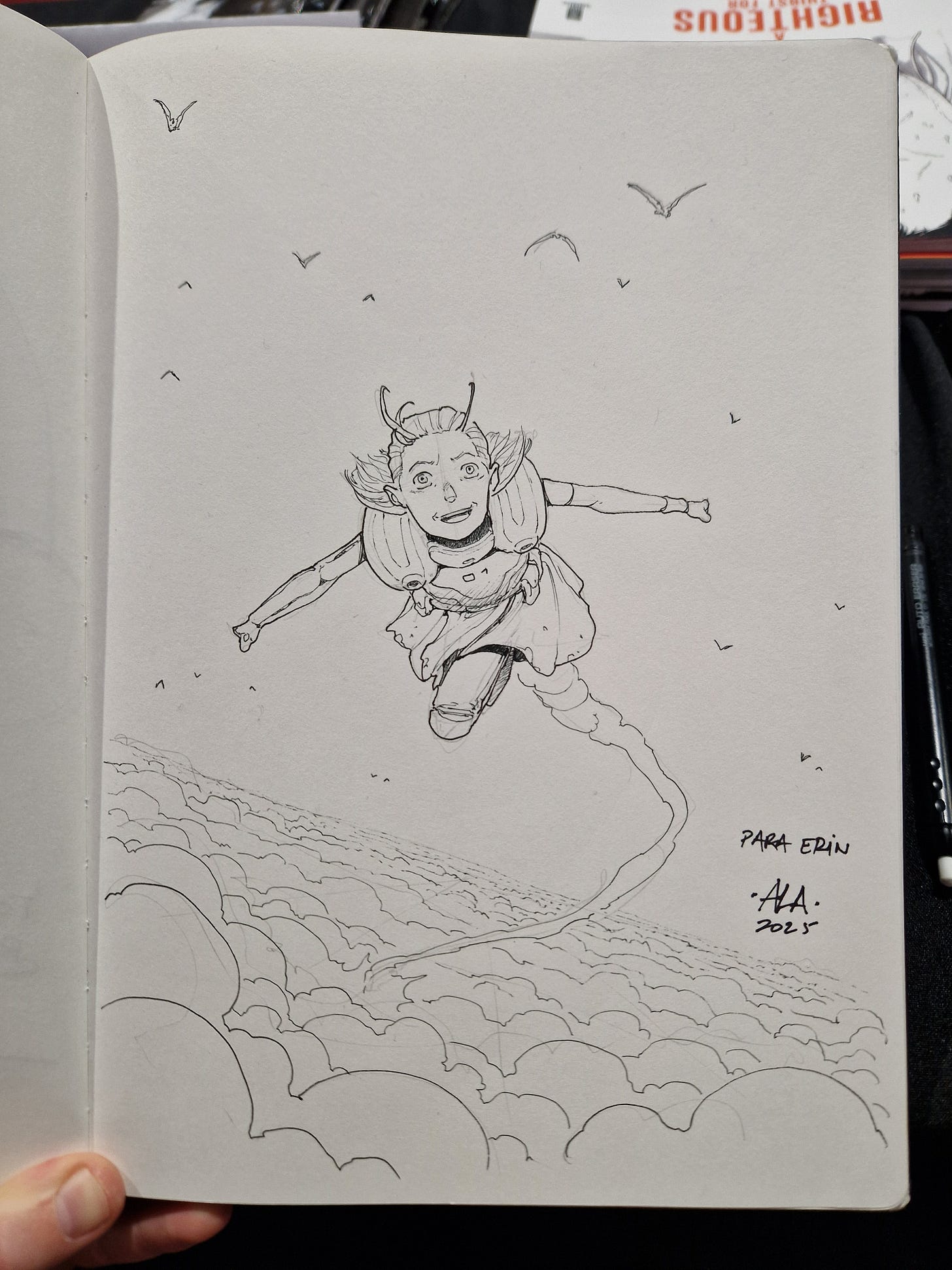 Pictured above you can see me drawing a commission on a cover, still unaware that all the food from the breakfast and lunch would come out through the top.