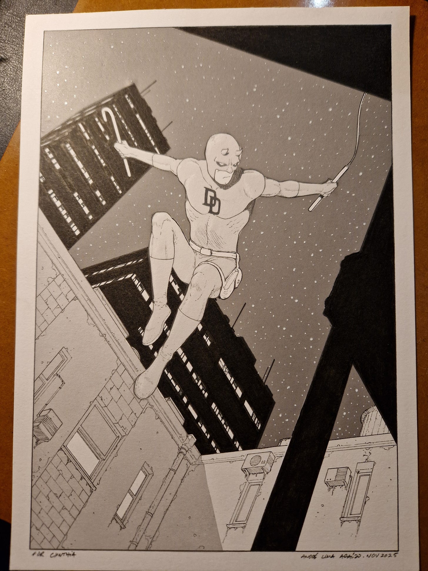 First, a Daredevil pre-show commission, fully inked and with screen tones.
